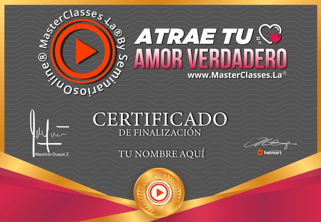 ¿Quieres encontrar la pareja de tus sueños? Con el MasterClass ATRAE TU AMOR VERDADERO, podrás identificar y superar los bloqueos que te han impedido vivir la relación que tanto deseas. Aprenderás sobre el amor verdadero, descubrirás los errores comunes al buscar pareja y dejarás de pasar desapercibido/a para el sexo opuesto. Además, diseñarás la relación de pareja que siempre has soñado y aprenderás a atraer lo que anhelas. En menos de 2 meses, podrás disfrutar del amor verdadero que tanto deseas. ¡Obtén tu certificado avalado por Hotmart y Seminarios Online!