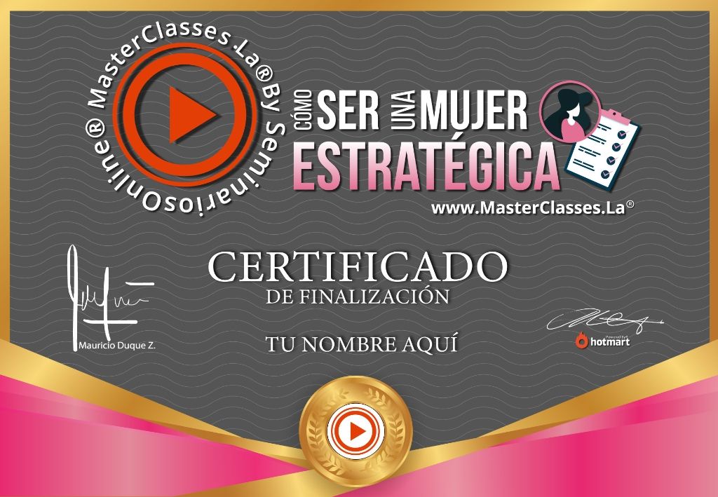 ¡Descubre cómo convertir tus sueños en proyectos concretos y sostenibles en el tiempo! Con el MASTER CLASS CÓMO SER UNA MUJER ESTRATÉGICA, adquirirás competencias para idear, planear, ejecutar y medir proyectos personales, corporativos y grupales. Aprenderás sobre planeación estratégica, administración del tiempo y desarrollo de tu plan estratégico. Además, recibirás bonos adicionales y un certificado avalado por Hotmart y Seminarios Online. ¡No pierdas la oportunidad de alinear tus planes con tu estilo de vida y deseos personales!