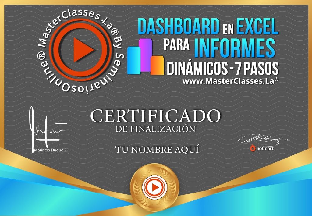 El curso “MasterClass DASHBOARD EN EXCEL PARA INFORMES DINÁMICOS – 7 PASOS” te enseñará a construir dashboards en Excel de manera práctica, eficaz y entendible. Aprenderás varias funciones de Excel, sin importar tu experiencia, para planificar acciones rápidas y efectivas utilizando los datos de Excel. Mejorarás la calidad y presentación de tus informes, aumentarás tu conocimiento en Excel y en dashboards, y explorarás nuevas herramientas para el manejo y administración de datos. Además, recibirás un certificado avalado por Hotmart y Seminarios Online. ¡No pierdas la oportunidad de ser más competitivo en el mercado laboral!