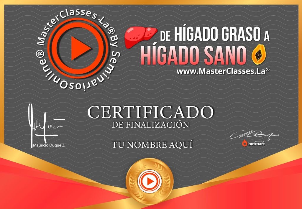 El curso “Master Class DE HÍGADO GRASO A HÍGADO SANO” te enseñará a limpiar la grasa del hígado utilizando solo 3 ingredientes naturales. Aprenderás la alimentación adecuada durante el tratamiento, qué alimentos y bebidas evitar, y la causa principal del hígado graso. Además, elaborarás jugos naturales para cuidar tu salud en general. Este programa cuenta con el aval de Hotmart y Seminarios Online, y está desarrollado por una persona que padeció de hígado graso y se recuperó gracias a este tratamiento natural. ¡Obtén tu certificado y mejora tu salud hoy mismo!