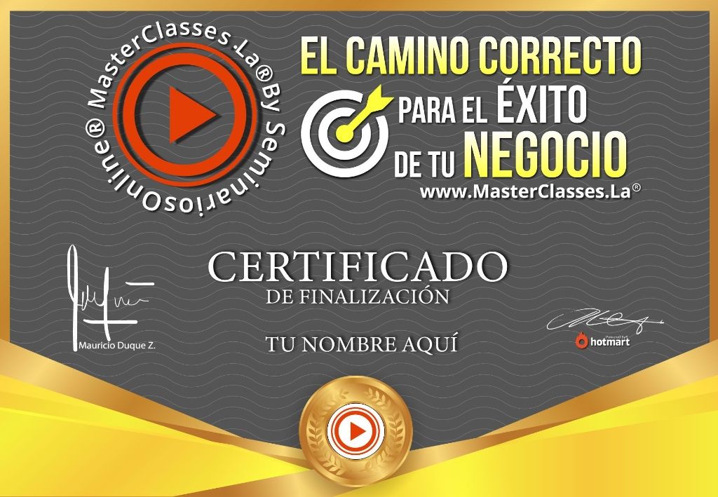El MasterClass “El Camino Correcto para el Éxito de tu Negocio” es un curso que te brinda una ruta paso a paso para emprender de manera inteligente y exitosa. Aprenderás a emprender tu propio negocio, vender en medios digitales, escalar tu negocio, consolidar tu marca, planificar para alcanzar tus objetivos, conocer a tu cliente ideal, crear un relato de marca persuasivo, comprender las finanzas de tu proyecto y emprender con éxito. Además, recibirás un certificado avalado por Hotmart y Seminarios Online. ¡No pierdas la oportunidad de alcanzar el éxito en tu negocio!