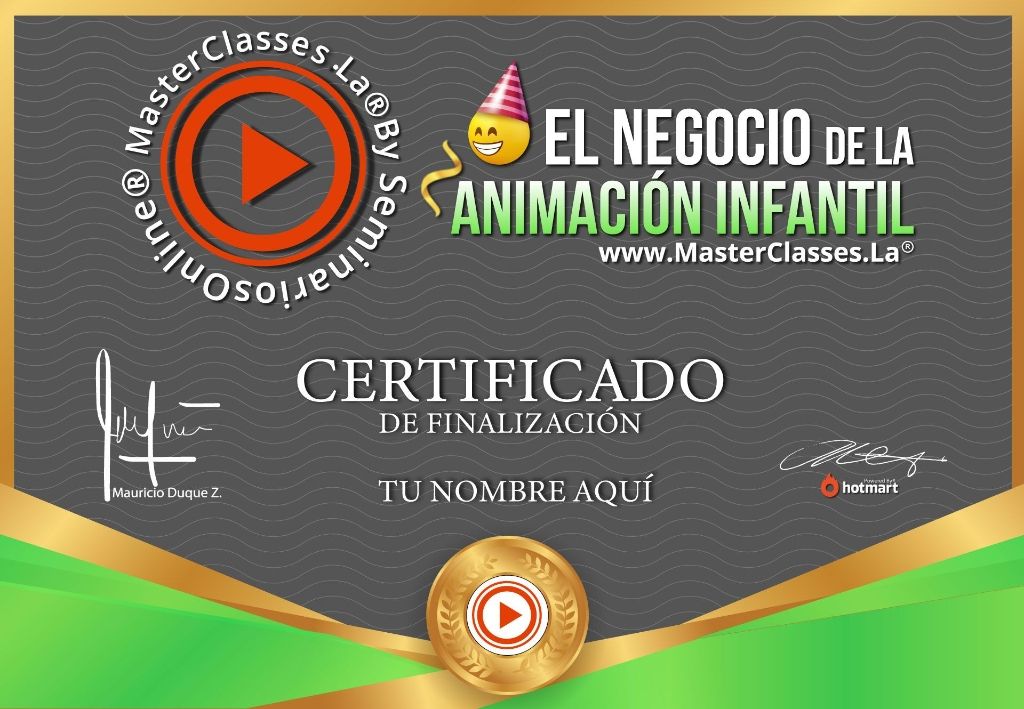 ¿Te gustaría convertirte en una animadora infantil y ganar dinero por tu talento? Con el MasterClass EL NEGOCIO DE LA ANIMACIÓN INFANTIL aprenderás todas las técnicas y habilidades necesarias para desenvolverte en fiestas infantiles, interactuar con niños, jóvenes y adultos, y convertirte en una gran animadora infantil. Aprenderás desde técnicas de respiración y actuación, vencer el miedo para hablar en público, conectar e interactuar con los niños, contar cuentos de manera fluida, hasta técnicas de baile para crear tus propias coreografías infantiles. Además, conocerás el tipo de maquillaje y vestuario adecuado para cada evento infantil, aprenderás a manejar de forma profesional un equipo de sonido y micrófonos, y también te enseñaremos cómo promocionarte en internet para atraer prospectos de tu ciudad. Obtendrás los secretos para conseguir los mejores clientes y aprenderás todos los detalles para conseguir la indumentaria necesaria para un show infantil. Con este curso, te desenvolverás con gran naturalidad y talento en los castings de tu ciudad y serás capaz de conseguir tu primer trabajo como animadora infantil. Al finalizar el curso, recibirás un certificado avalado por Hotmart y Seminarios Online. No necesitas tener conocimientos especializados ni hacer grandes inversiones, ¡solo necesitas tu talento y ganas de triunfar en el mundo de la animación infantil!