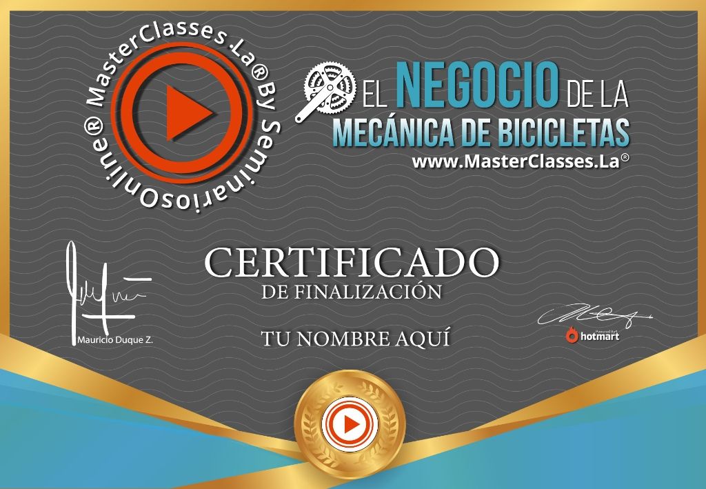 ¿Quieres aprender a reparar y mantener bicicletas de todo tipo? Con el MasterClass EL NEGOCIO DE LA MECÁNICA DE BICICLETAS podrás adquirir los conocimientos necesarios para atender este creciente mercado. Aprenderás a realizar el mantenimiento de diferentes bicicletas, descubrirás cómo generar ingresos abriendo un taller y conocerás las partes y servicios de una bicicleta. Además, aprenderás a prevenir y solucionar posibles fallos, y podrás obtener un certificado avalado por Hotmart y Seminarios Online. ¡No pierdas la oportunidad de convertirte en un experto en mecánica de bicicletas!