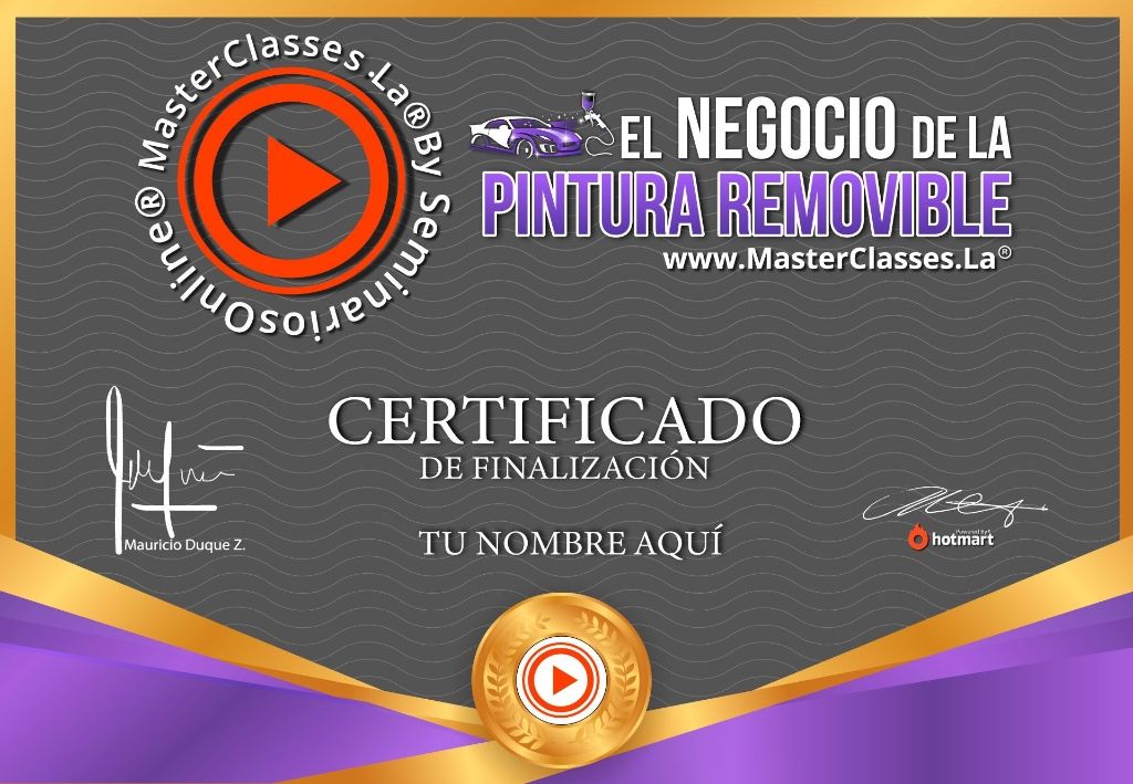 ¡Descubre el lucrativo negocio de la pintura removible con el Master Class EL NEGOCIO DE LA PINTURA REMOVIBLE! Aprende a utilizar esta pintura en diferentes superficies, conoce su resistencia y durabilidad. Aprenderás a pintar autos, camionetas, motocicletas y cualquier tipo de vehículo o superficie apta. Prepárate para empapelar rápidamente, descubre las técnicas y tips para realizar trabajos perfectos y aprende a desempapelar correctamente. Además, adquirirás habilidades de venta y aprenderás a cotizar tus trabajos. Obtén tu certificado avalado por Hotmart y Seminarios Online. ¡No te pierdas esta oportunidad de éxito en el negocio de la pintura removible!