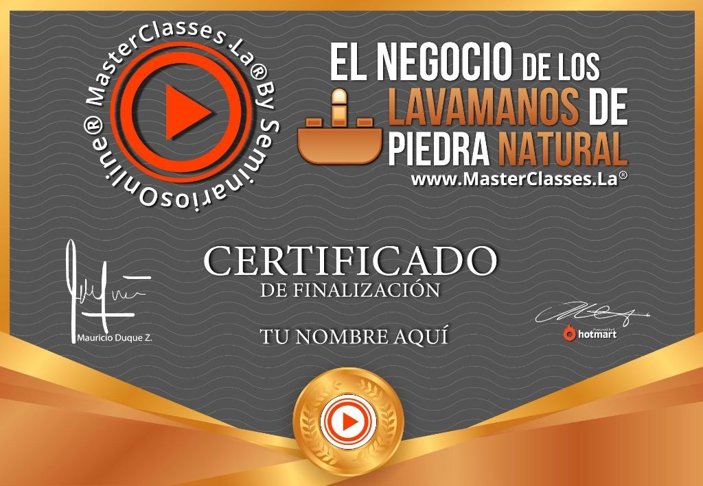 Descubre el fascinante mundo de los lavamanos de piedra natural con el MasterClass EL NEGOCIO DE LOS LAVAMANOS DE PIEDRA NATURAL. Aprende las técnicas para crear estos modernos y elegantes lavatorios, marcando tendencia en decoración de interiores y arquitectura. Con este curso, podrás escoger la materia prima adecuada, realizar cortes precisos, tallar cualquier diseño y lograr un pulido brillante. Obtén el certificado avalado por Hotmart y Seminarios Online. ¡No te pierdas esta oportunidad de aprender y emprender en el mundo de la piedra natural!