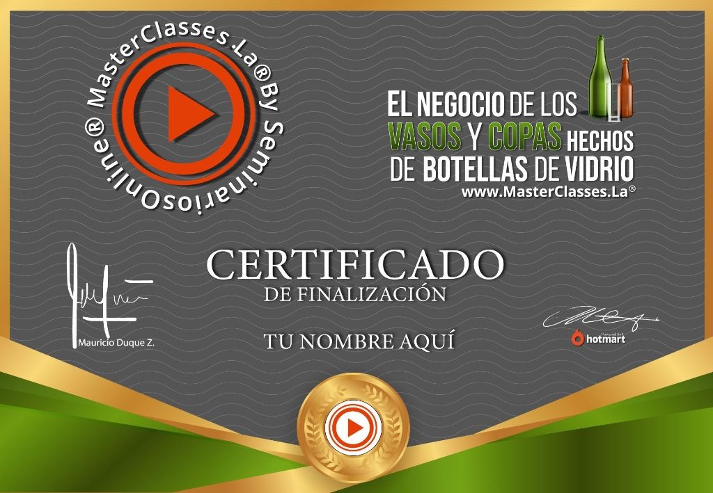 ¿Te gustaría transformar botellas de vidrio en hermosos vasos y copas? Con el MasterClass EL NEGOCIO DE LAS VASOS Y COPAS HECHOS DE BOTELLAS DE VIDRIO, aprenderás a cortar y personalizar botellas de vidrio de forma profesional. Obtendrás conocimientos para evitar riesgos y reutilizarás las botellas para crear vasos, copas y objetos decorativos. Además, podrás convertir esta habilidad en un negocio rentable y lucrativo. Aprenderás técnicas de corte, pulido y comercialización de tus productos. ¡Accede al certificado avalado por Hotmart y Seminarios Online!