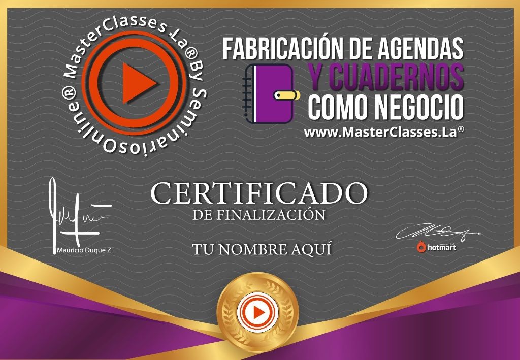 ¿Sabías que con el MasterClass FABRICACION DE AGENDAS Y CUADERNOS COMO NEGOCIO podrás aprender a crear agendas y cuadernos personalizados desde la comodidad de tu casa? Con este curso, podrás dominar técnicas exclusivas para crear productos de alta calidad y generar alta rentabilidad. Aprenderás a utilizar programas como PowerPoint y Canva para crear diseños únicos y personalizados. Además, conocerás todo lo necesario para buscar proveedores y obtener recursos gratuitos para decorar tus proyectos. Únete a este exclusivo grupo de emprendedoras creativas y accede a un certificado avalado por Hotmart y Seminarios Online. ¡No pierdas la oportunidad de convertir tu pasión en un negocio escalable y rentable!