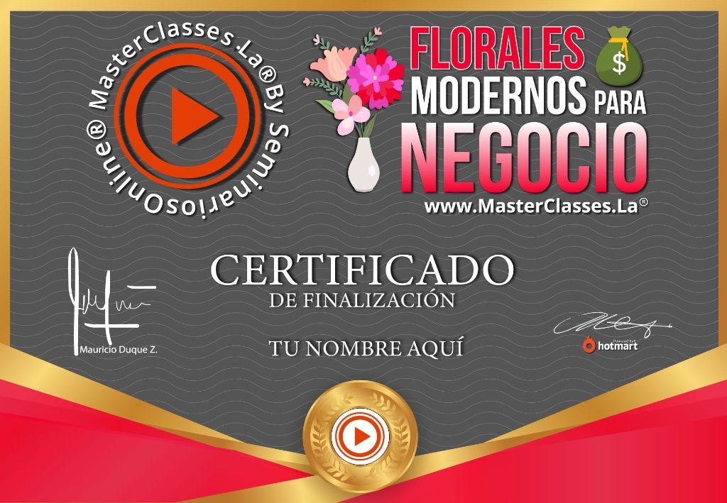 El curso “MasterClass Florales Modernos para Negocio” te enseñará a diseñar arreglos florales únicos y modernos, para emprender un negocio lucrativo y de alta demanda. Aprenderás técnicas florales, conocerás el mercado floral, evitarás cometer errores y ampliarás tus servicios con 3 técnicas adicionales. Además, desarrollarás tu marca con estilos diferenciadores y obtendrás un certificado avalado por Hotmart y Seminarios Online. No pierdas la oportunidad de dominar el arte floral y emprender tu propio negocio con este curso.