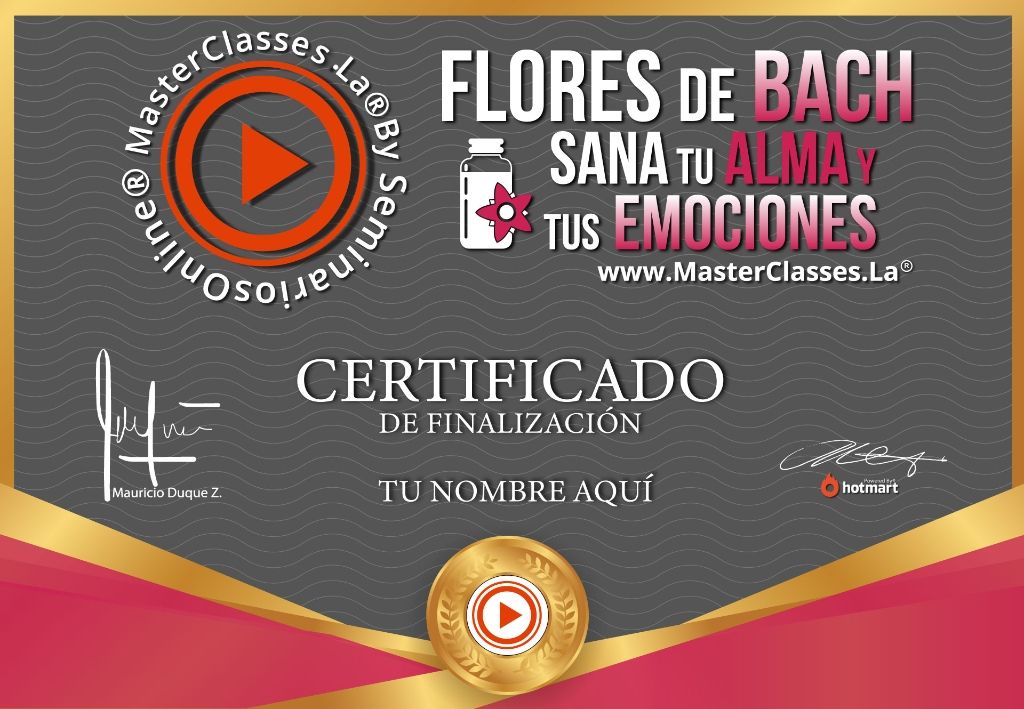 Descubre el poder de las Flores de Bach para sanar tus emociones y alma en el MASTER CLASS FLORES DE BACH. Aprende a identificar las flores adecuadas para superar problemas emocionales, crea mezclas personalizadas y mantén un estado óptimo de salud mental, física y emocional. Conviértete en un profesional de los métodos naturales de salud y accede a un certificado avalado por Hotmart y Seminarios Online. ¡No te pierdas esta oportunidad de transformación personal y profesional!