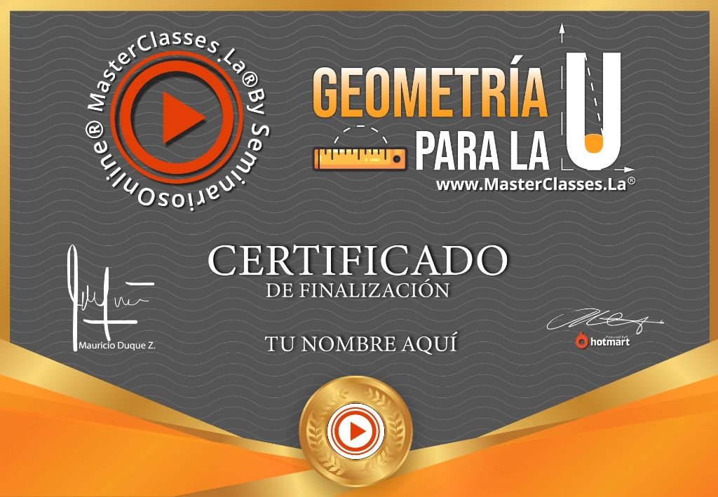 ¡Aprende geometría de manera sencilla y puntual con el MasterClass GEOMETRÍA PARA LA U! Con este curso, podrás superar el examen de admisión a la universidad y sobrellevar los primeros ciclos con éxito. Aprenderás formas de organizarte para estudiar, motivación para cada tema, resolverás ejercicios tipo examen de admisión y mucho más. Además, recibirás un certificado avalado por Hotmart y Seminarios Online. No pierdas la oportunidad de adquirir el conocimiento necesario para triunfar en la universidad. ¡Inscríbete ahora!