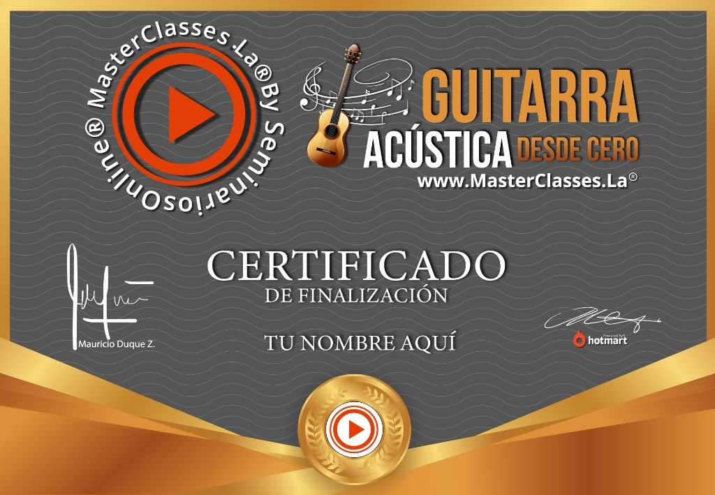 Descubre el fascinante mundo de la guitarra con el programa GUITARRA ACÚSTICA DESDE CERO. Aprende habilidades básicas y domina los conocimientos necesarios para tocar este instrumento. Con 11 clases digitales de alta calidad, podrás interpretar tus primeras canciones y desarrollar tu talento musical. Además, recibirás un certificado avalado por Hotmart y Seminarios Online. No pierdas la oportunidad de conectar con tu talento artístico y disfrutar la pasión por la música. ¡Inscríbete ahora!