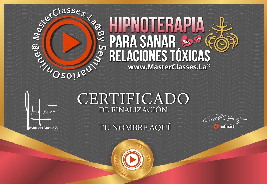 ¡Descubre cómo sanar tus relaciones tóxicas a través de la hipnosis! En este masterclass de Hipnoterapia para Sanar Relaciones Tóxicas, aprenderás a identificar y tratar relaciones dañinas para vivir en paz y tranquilidad. Aprenderás a identificar una relación tóxica, descubrirás las creencias que te llevan a ellas, y adquirirás herramientas prácticas de meditación profunda y autohipnosis. Además, trabajarás en tu autoestima y podrás aplicar estas herramientas en otras áreas de tu vida. Obtén un certificado avalado por Hotmart y Seminarios Online. ¡No te pierdas esta oportunidad de transformación!
