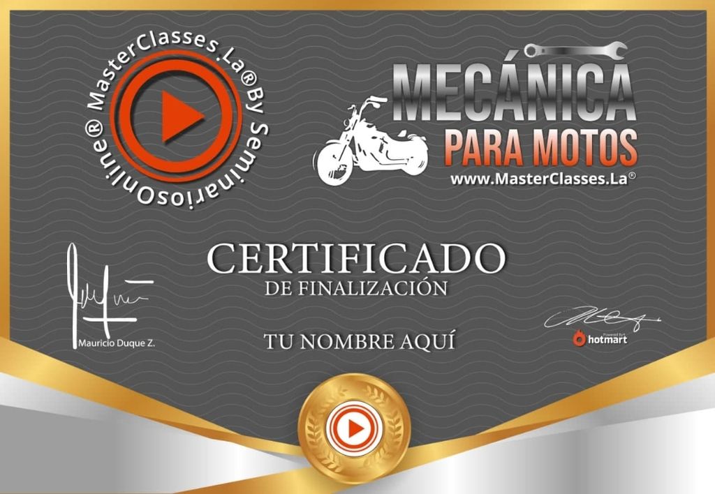 - Una MasterClass completa de habla hispana sobre mecánica de motos, un curso de bajo costo y de mucho valor, enfocado a personas sin experiencia en mecánica. hasta personas con amplios conocimientos al respecto.