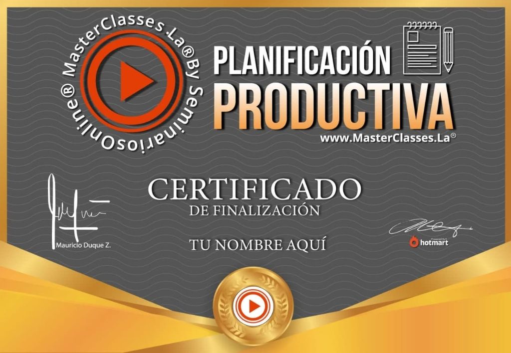 El curso “Planificación Productiva” te enseñará a identificar y cambiar tus creencias limitantes sobre el tiempo y la productividad, maximizar el potencial de tu cerebro, establecer metas claras y concisas, planificar tus metas anuales de forma natural, crear un horario productivo adaptado a tus necesidades y utilizar herramientas para ser más eficiente en tu día a día. Desarrollado por Miriam Quiñones, emprendedora y especialista en gestión de proyectos, este curso te ayudará a alcanzar tus sueños y metas de manera efectiva. ¡No te pierdas la oportunidad de obtener el certificado avalado por Hotmart y Seminarios Online!