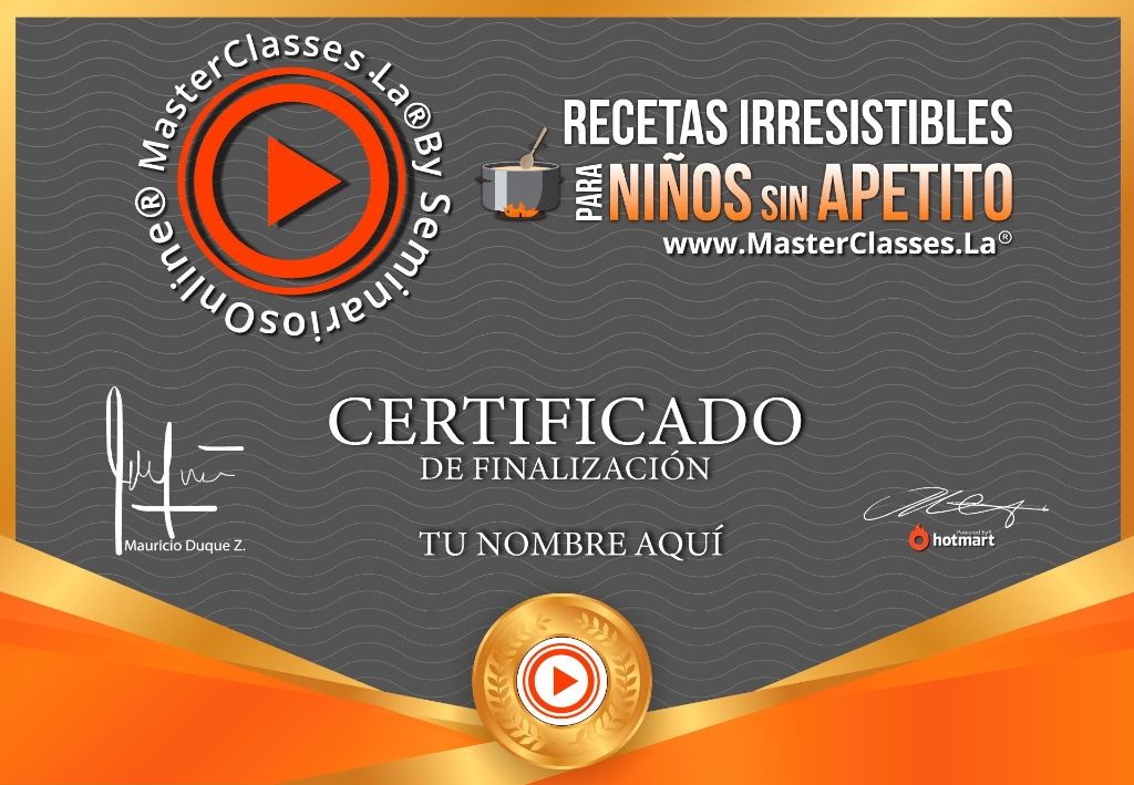 - Al finalizar el curso tendrás un recetario completo para hacerle a tus hijos utilizando diferentes técnicas de cocina como si fueras un chef profesional.