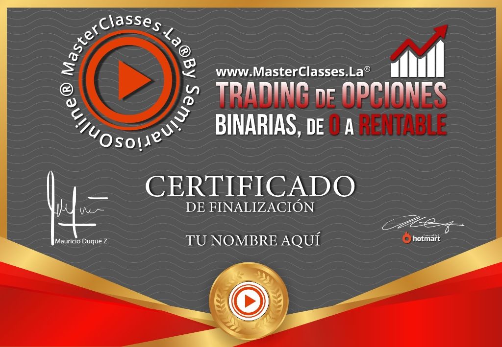 ¡Aprende a operar opciones binarias y forex de manera rentable y segura con el Masterclass Trading de Opciones Binarias de Cero a Rentable! Este curso te proporcionará toda la información y recursos necesarios para emprender tu camino en el trading y obtener ganancias. Conocerás los conceptos avanzados de análisis técnico, gestión de riesgo y psicotrading, y aprenderás estrategias rentables para operar en cualquier mercado financiero. ¡No pierdas la oportunidad de convertirte en un trader exitoso!