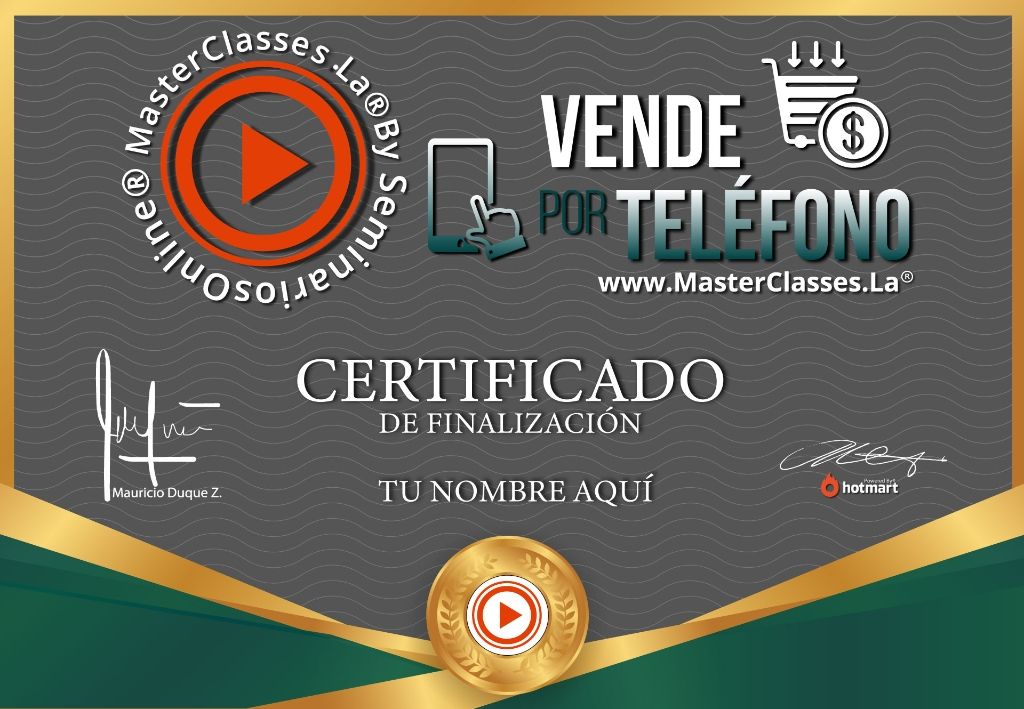 ¡Aprende a vender por teléfono con el programa VENDE POR TELÉFONO! Descubre las claves para enganchar a tus clientes, manejar objeciones y aumentar tus ventas de forma ética y honesta. Conoce las estrategias y metodologías probadas para vender cualquier producto o servicio en una llamada telefónica. Obtén el certificado avalado por Hotmart y Seminarios Online. Desarrollado por Diego Abreu, experto en ventas y formador para multinacionales. ¡No te pierdas esta oportunidad de dominar las técnicas de ventas persuasivas!