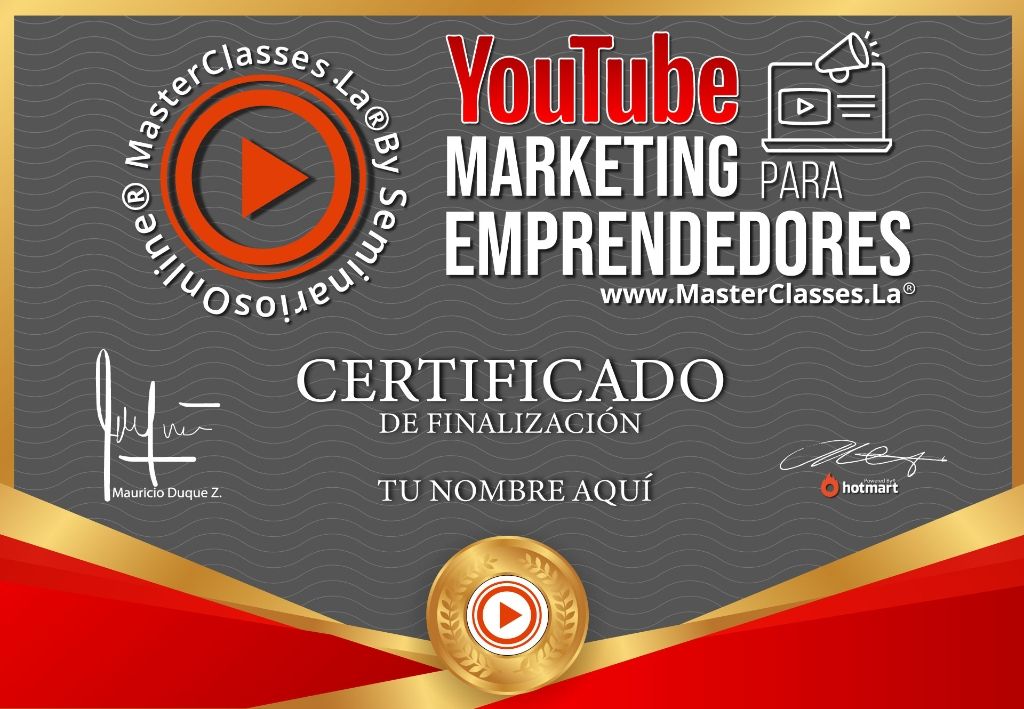 ¡Aprende a dominar YouTube y posicionar tu marca en Google con el MasterClass YOUTUBE MARKETING PARA EMPRENDEDORES! Descubre cómo crear contenido de valor, captar audiencia y lograr clientes para tus productos o servicios. Conoce paso a paso cómo configurar tu canal, editar tus propios videos y monetizarlos para generar altos ingresos. Obtén el certificado avalado por Hotmart y SeminariosOnline. ¡No te pierdas esta oportunidad de crecimiento y éxito en el mundo digital!
